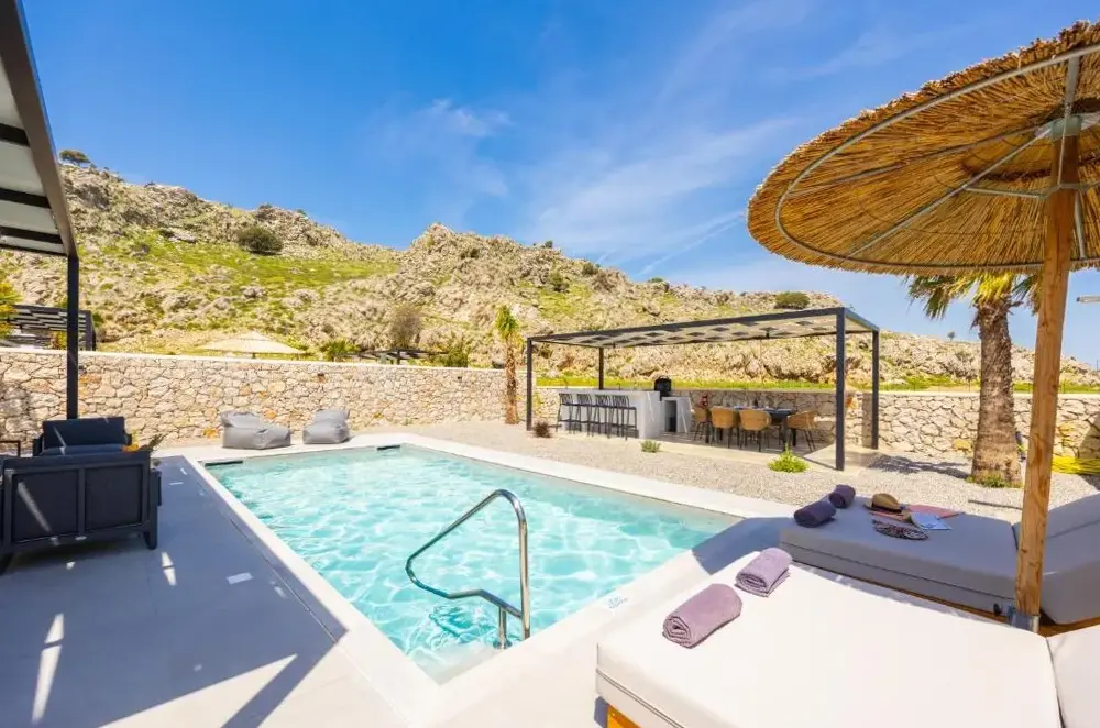 Great complete and luxurious garden/swimming pool at the villa, welcome package upon arrival with snacks, water/wine. Very good contact with the managers about questions and requests: respond quickly and think along. Both the villa and the swimming pool very hygienic! This accommodation quickly gave a home feeling and we will certainly come back (for longer than a week). Tip: From the back garden you have a view of a hill with goats behind which the sun sets.
